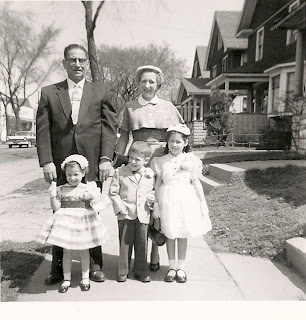 Could this be Easter? I think this was on Portland Ave. near the house in which Papa and Mama. That’s my mother, who was quite the fashion plate in her youth, and Papa was her father. They were best friends. And those are my siblings. By the way, my mom worked three jobs to buy the house for her parents, or so says family lore.