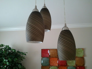 DIY stores can give you an expensive look at a great price. This is our dining room light fixture. It gets a lot of compliments. I think it cost about $45, because it’s three pendant lights from Home Depot. I picked through the globes carefully to be sure the colors weren’t flawed or the finish chipped.