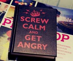 I stood commiserating with the manager and staff at a closing Borders the other night. At the end of our conversation, the manager picked up and silently waved a small, hardback called SCREW CALM, GET ANGRY.
