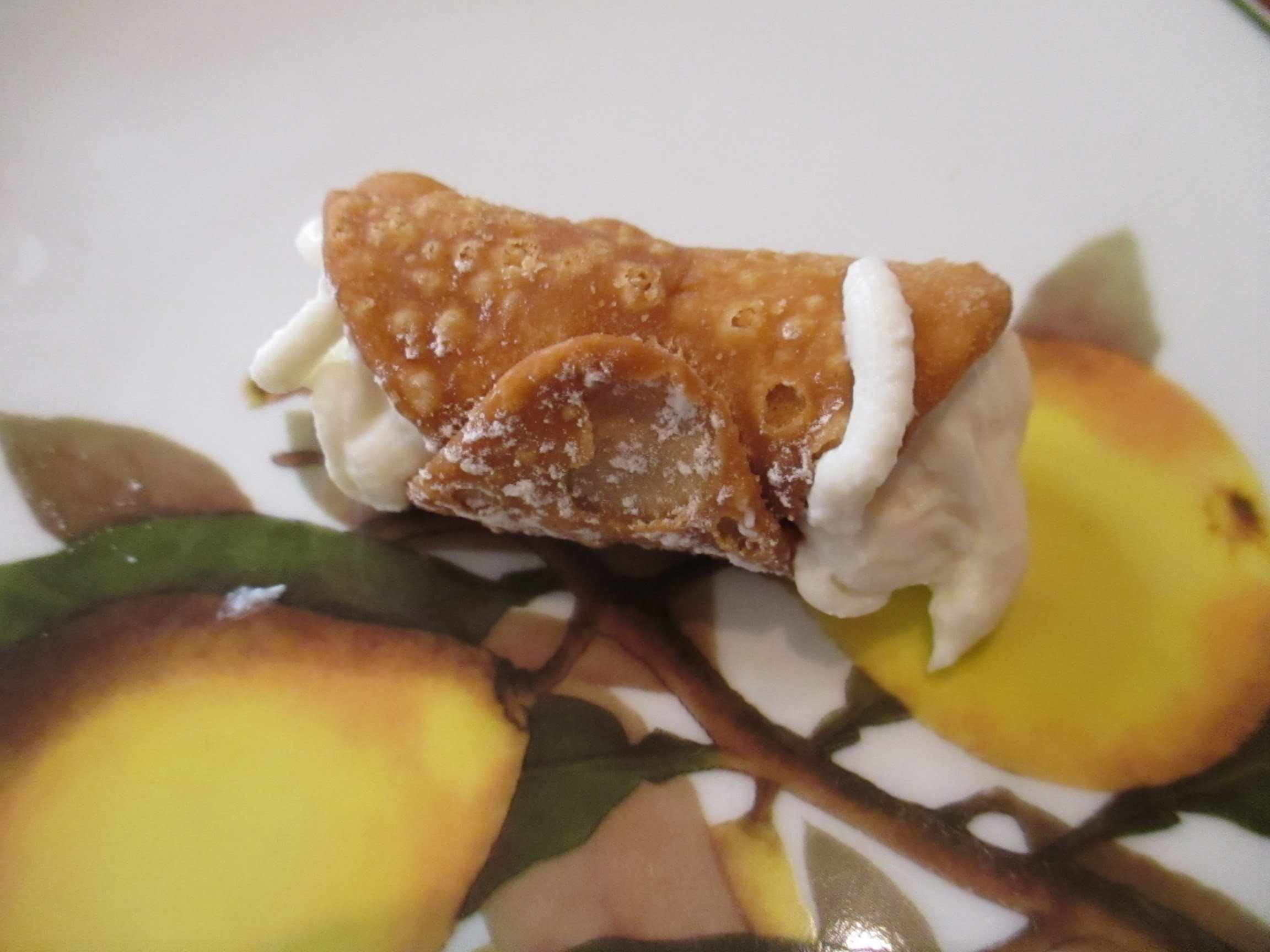 When I went down to breakfast the first day we were in Sicily, I saw this on a side-table. Cannoli fixin's, as we used to say in the South. They must be preparing...