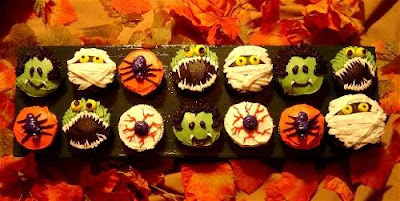 Wondering how to make these cute cupcakes? The toppings can be made from pieces of black licorice, marshmallows, chocolate disks, taffy, sprinkles.