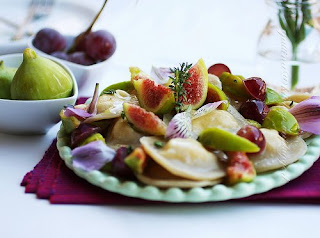 What a luxury to have the time to spend putting a fabulous meal together. French onion soup. Lemon buttermilk cake. Home-made pastas (mmm..home-made ravioli). Apple-blueberry turnovers. Shrimp mango salad.