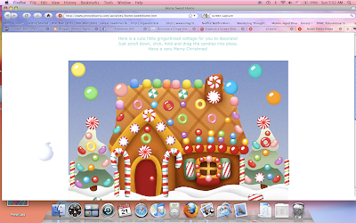 The fabulous Michele at Bleeding Espresso suggested this holiday tradition again this year, and it sounds like such a fun thing to do with kids. You’ll find gumdrops, candy canes and all the decorations on the page. It’s easy to drag and drop them onto the house or trees. {That’s a screen shot of mine in progress. Doesn’t it look festive?}
