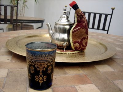 Green tea is a staple in Morocco, too. Minted, and served steaming hot in these beautiful patterned glasses.