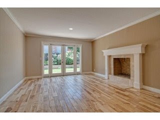 Obviously, I’m going to have to take up gardening, so I can turn this courtyard into a place of splendor. I see colorful ceramic pots with plants, topiary. Maybe a chair or bench. This is the living room. I am crazy about it. Aren’t the floors spectacular? Birch. Solid hardwood.The dining room is on the right. Big. This kitchen is gorgeous. And there is a full pantry closet with a glass door. In case we get lost, it’s etched “PANTRY.” I wouldn’t have done that, but then again, this is the last house we’ll have, and I will be grateful it’s labeled when Alzheimer’s sets in. Assuming I can still read then. You probably think this is a different view of the living room. It’s actually the family room and will be where the two bigger dogs hang out. Yes, two fireplaces in this house! Nice backyard with a fountain.