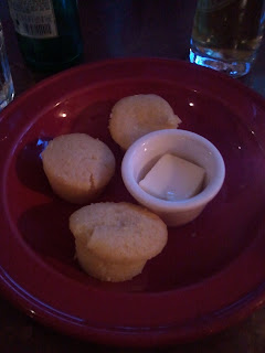 Our waiter came over to take our order. He was kind of goofy. My girlfriend told him that she was a pain about her food being hot, and that she’d send it back if it wasn’t. He was very nice about it. The cornbread arrived first.