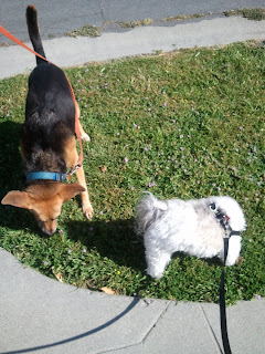 Our neighborhood is full of good smells. I love to watch “the boys” root around in the grass, stick their noses into bushes, stop at street lamps where other dogs have left pee-mail messages.