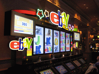 This is, in fact, what it looks like. A giant Ebay slot machine. And it sits on a wall at the Seminole Hard Rock Casino in Tampa.